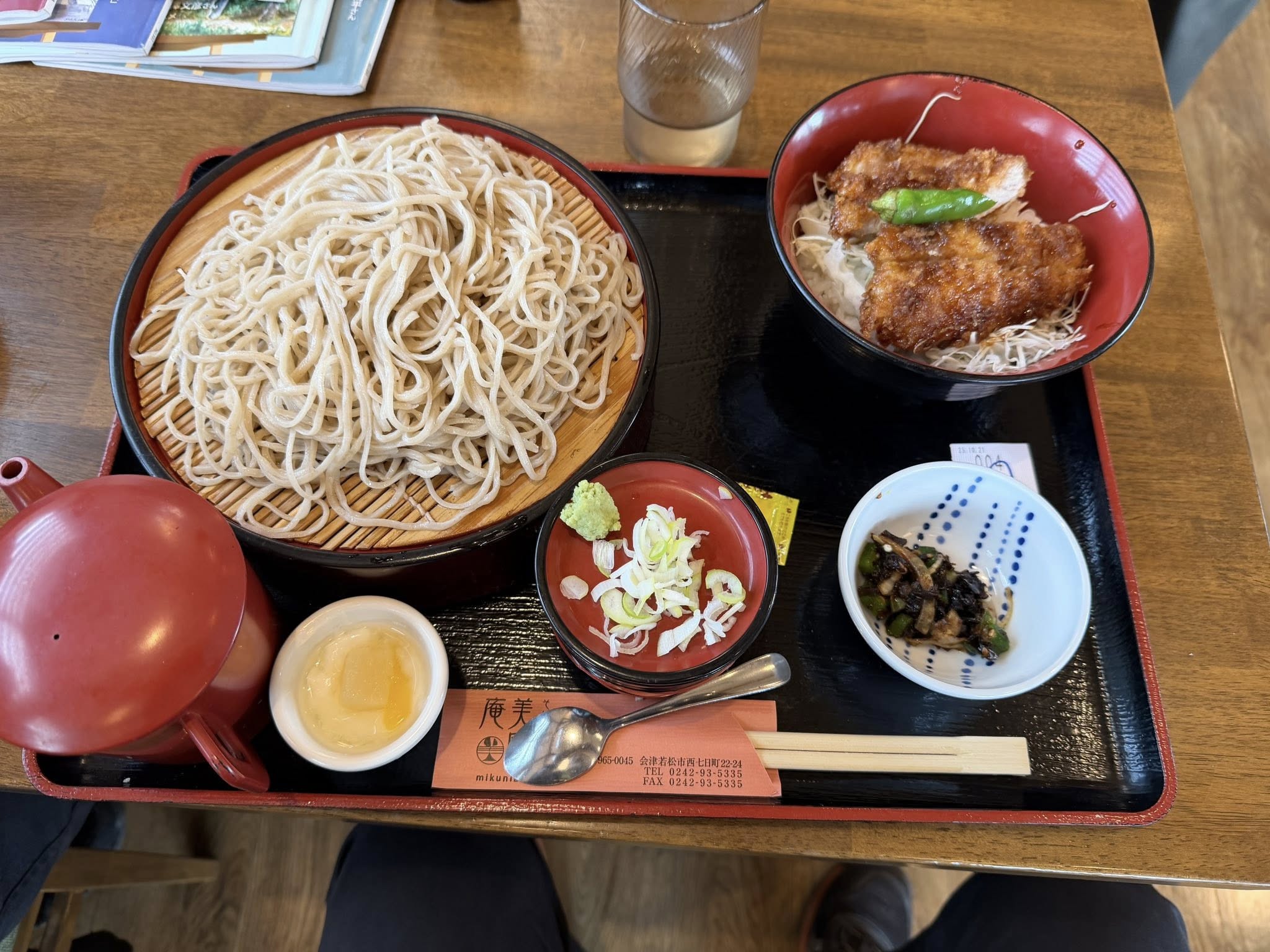 作業最終日のランチは、近くの食堂で 皆でソースカツ丼と蕎麦のセットを注文!