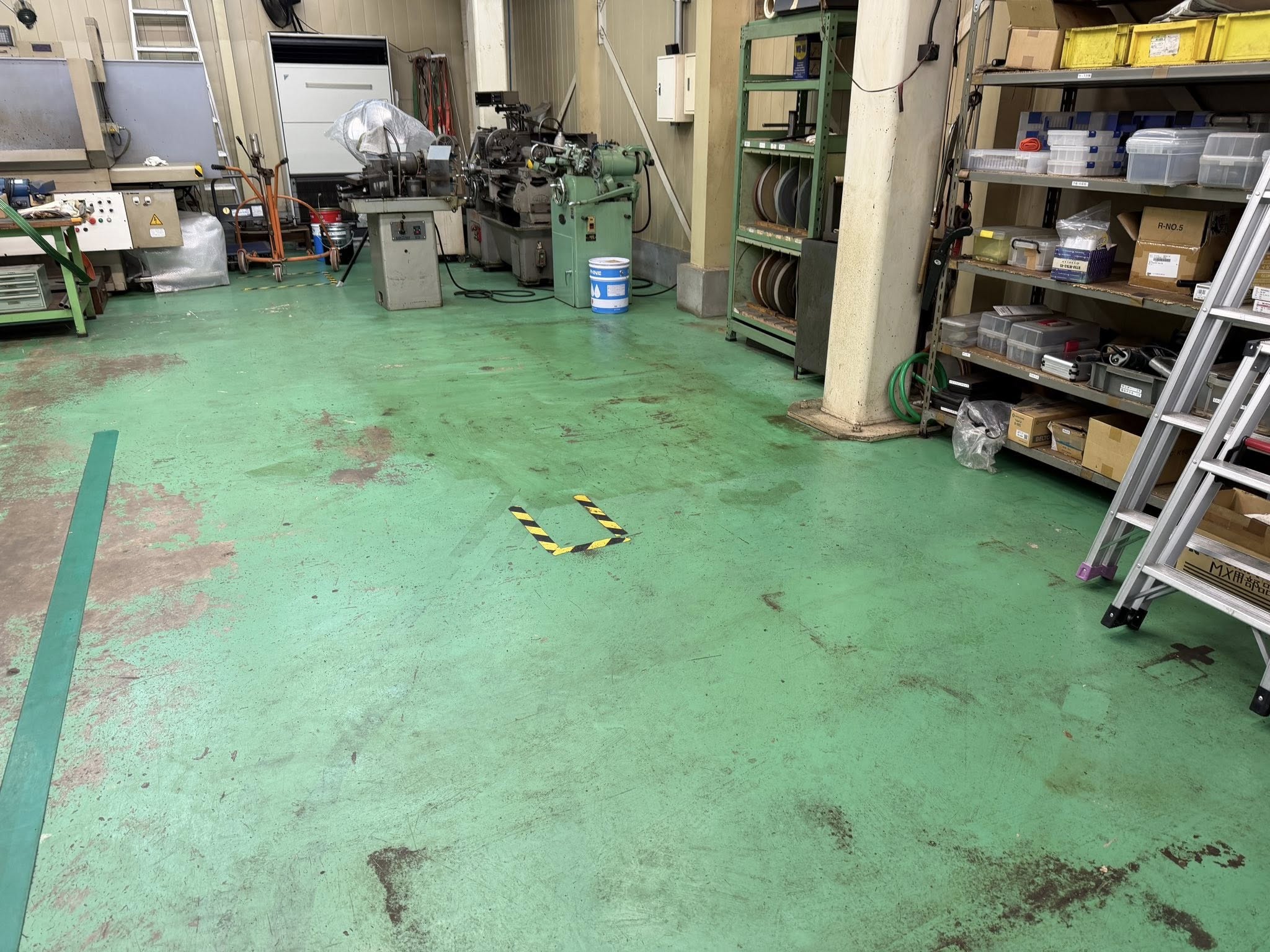 事前に、お客様にて 作動油を抜いて頂いたので、工場床にもほとんど油がこぼれませんでした。
